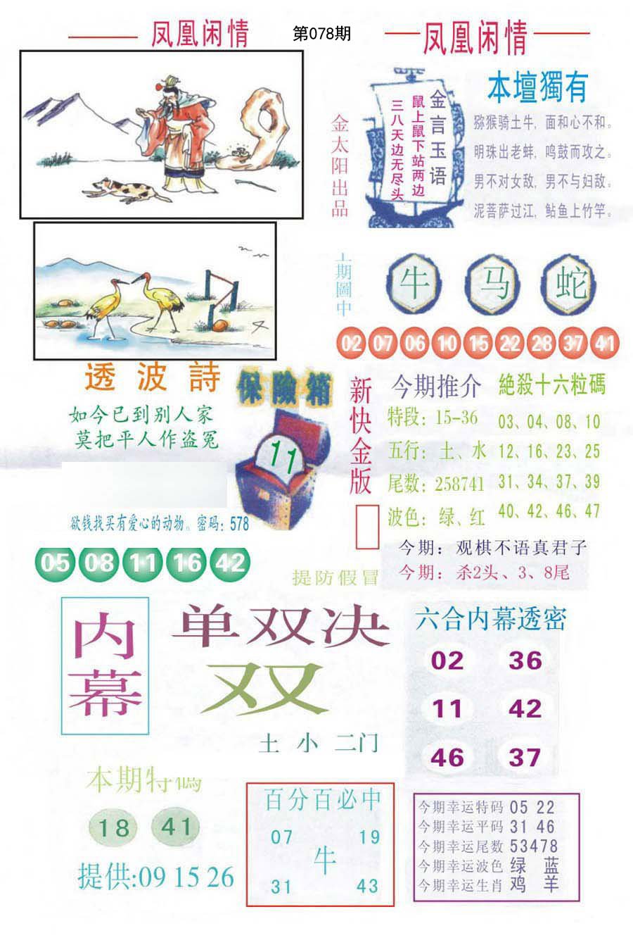 078期成语爆平特【人生得意须尽欢】开?00准 |